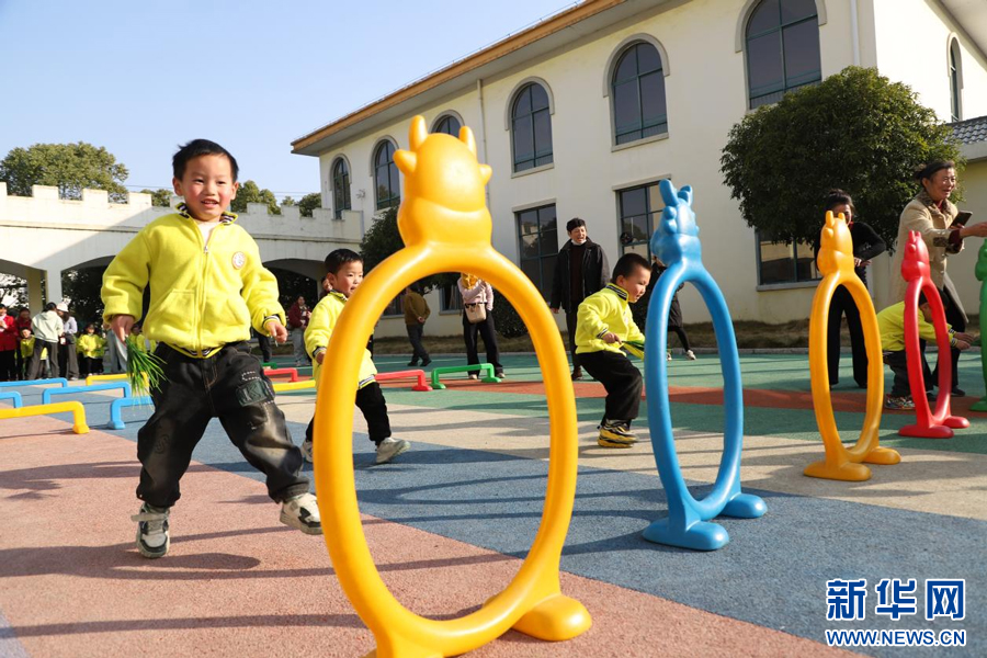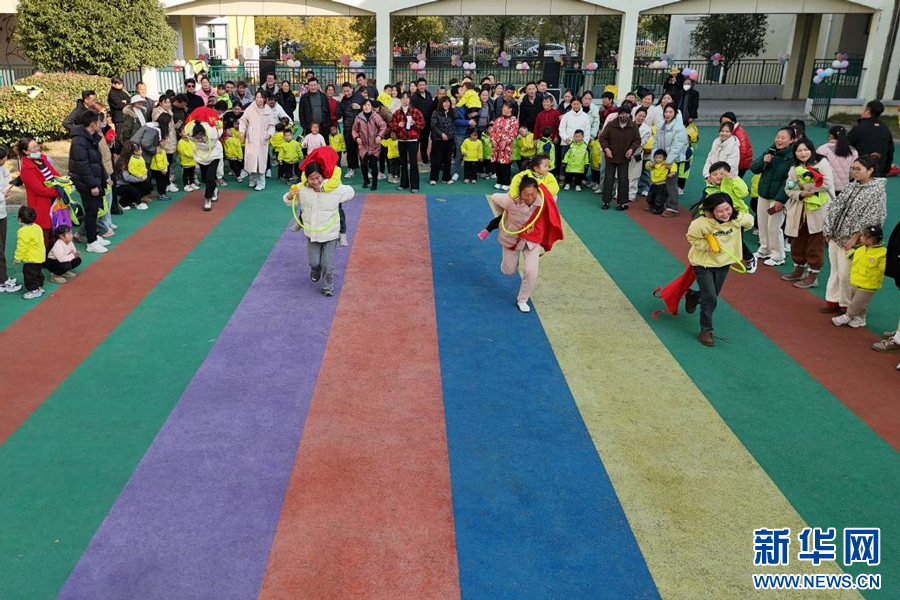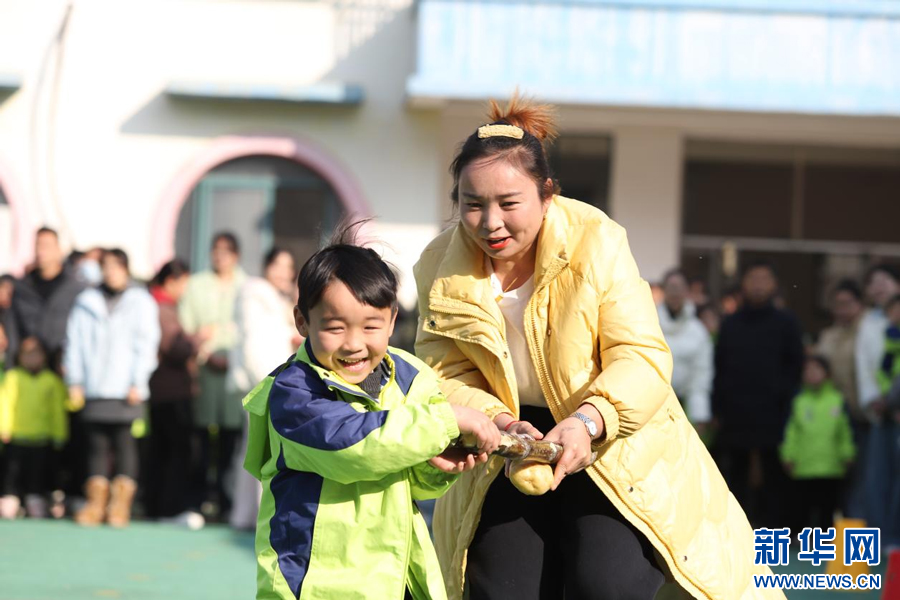 江西省余干县实验幼儿园举办的“庆丰收 享运动 迎新年”主题亲子活动。新华网发 韩海建 摄
