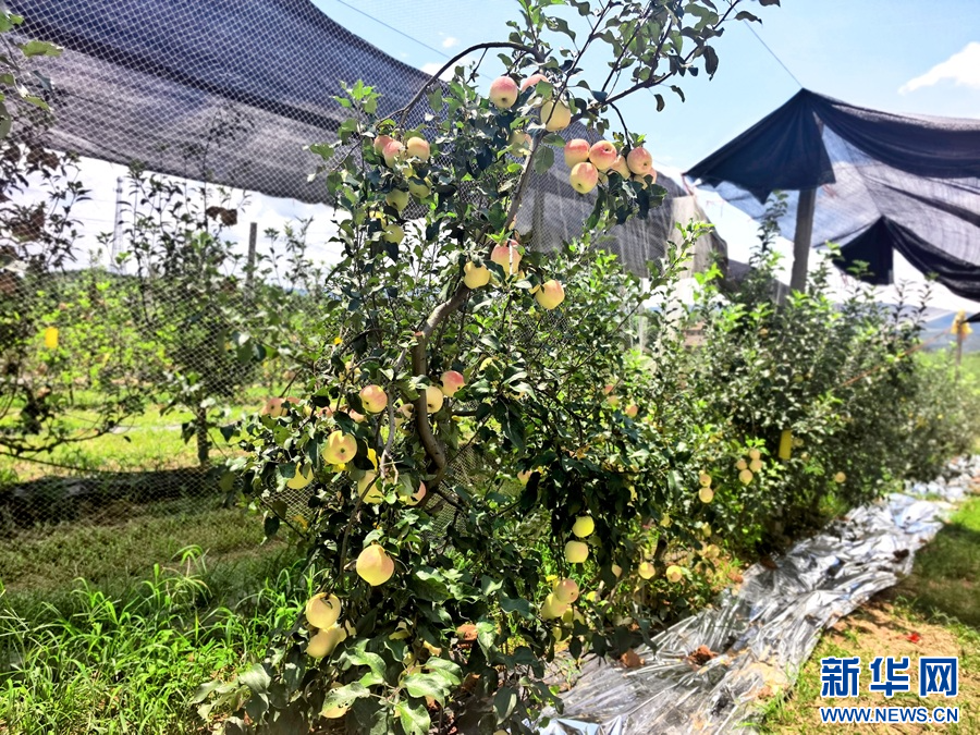 江西硕优科技发展有限公司总经理王昱荻介绍:“这个是我们硕丰南方苹果的早熟品种,它的挂果时间是在7月底8月初,比北方的苹果早成熟30天左右。我们采用密植型种植方式,在丰产期亩产能够达到4000至6000斤。”
