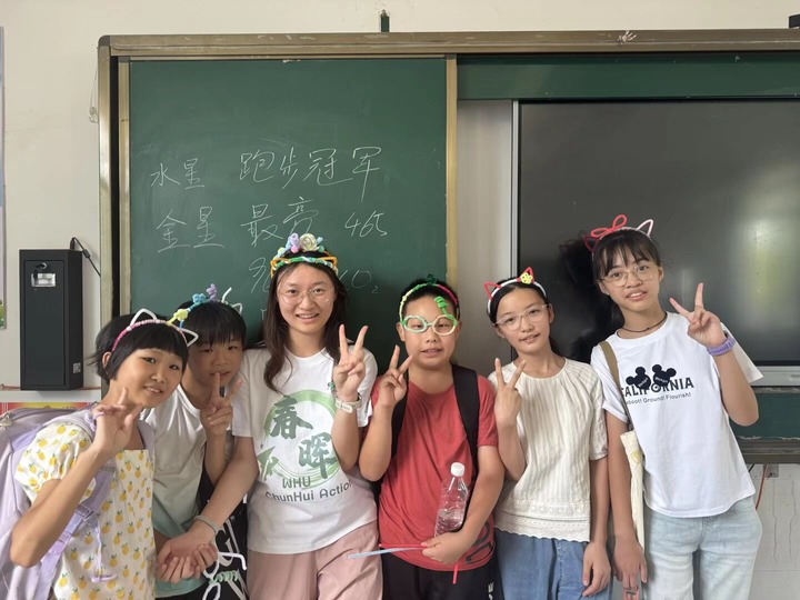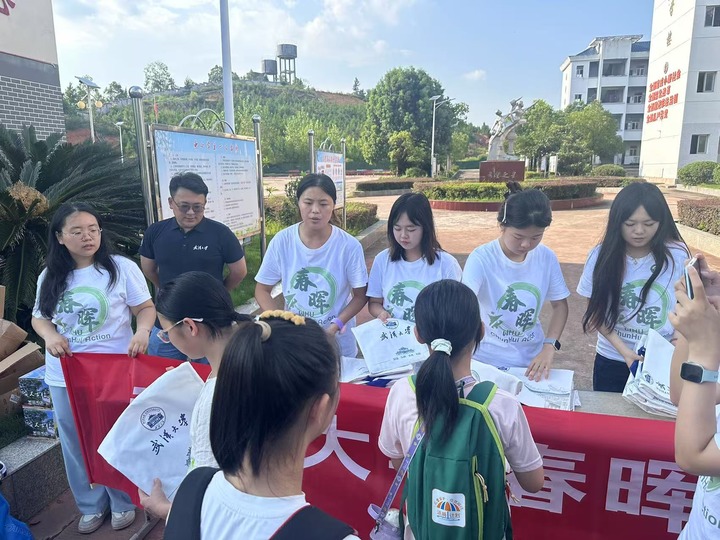 来农村支教,成长受益的不止是孩子。从初到农村的适应到与学生们建立深厚感情,从教学实践中的迎接挑战到个人成长的收获,支教时光也成了支教队员们珍贵的“青春之歌”。他们用日志、影像记录下支教日常:课堂上,他们用武大珞珈山的故事引导学生绘制“我的大学”;课间,他们带着孩子们跳自创的 “樱花韵律操”;家访时,他们为孩子们送上印有武大校训的励志卡片……一位支教队员说:“当孩子们的眼睛里亮起希望的光,我们便看到了教育的意义。”